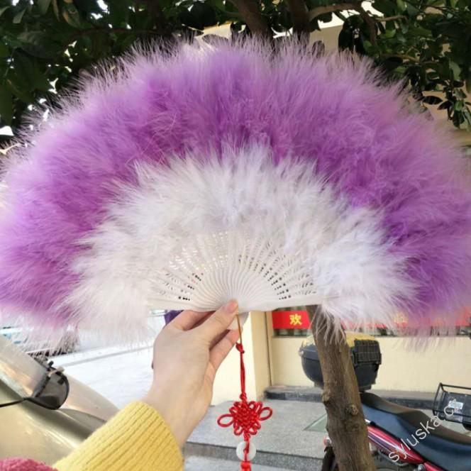 Dvoubarevný péřový vějíř - BÍLO-FIALOVÝ