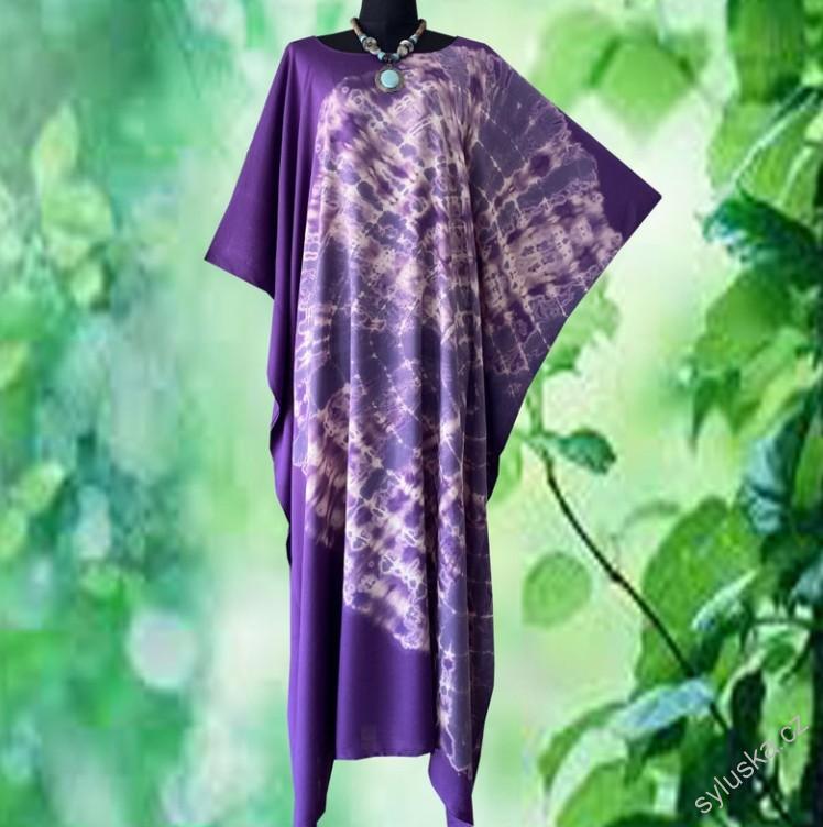 Fialový KAFTAN dlouhý batikovaný (46) - kulatý výstřih