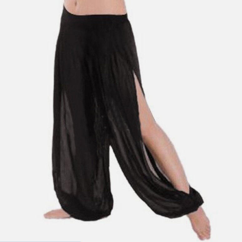Harémové šifonové taneční kalhoty, stažené kolem kotníčku, na bocích rozparky. Průsvitné.