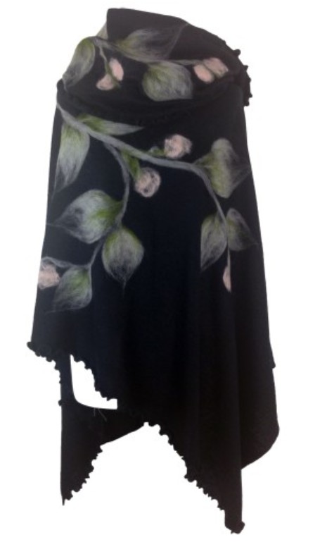 Půvabné měkké pončo z pleteniny zdobené květinovými vzory - vytvořené tzv. suchým filcováním.