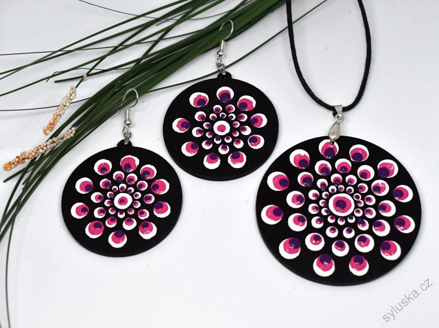 Ručně malovaná souprava závěsných náušnic a přívěsku.