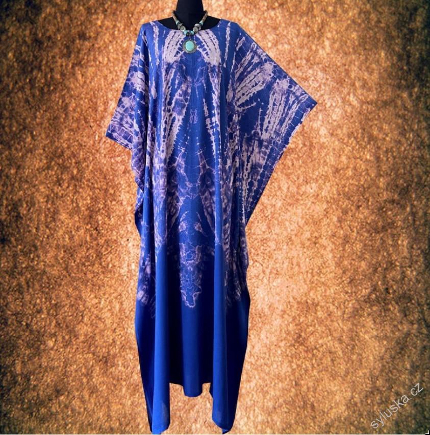 - Modrý KAFTAN dlouhý batikovaný (54) - kulatý výstřih