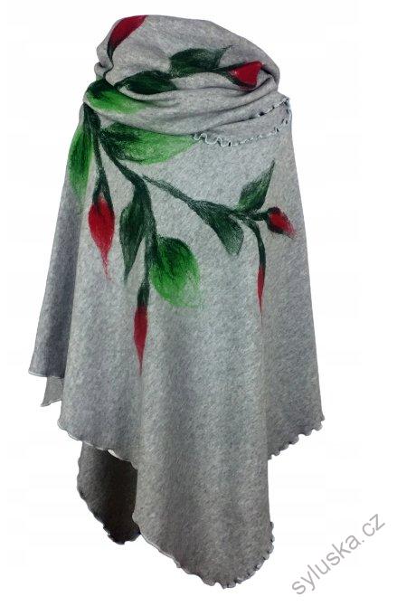 - Pončo POPELAVĚ ŠEDÉ květinové + šála