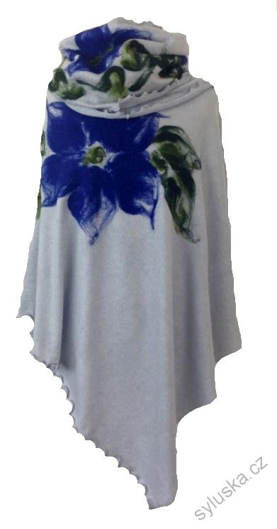 - Pončo ŠEDÉ s modrou květinou + šála