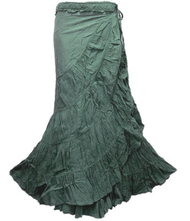 Příjemná bavlněná zavinovací sukně, v pase ozdobena krajkou.
