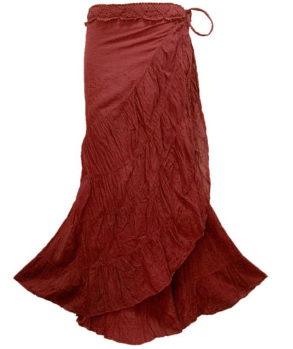Příjemná bavlněná zavinovací sukně, v pase ozdobena krajkou.