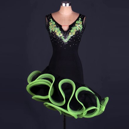 Šaty na latinu - ČERNO-ZELENÉ, vel. S až XXL