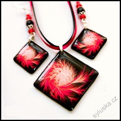 Souprava přívěsku a náušnic - CHMÝŘÍ červenočerné (kosočtverec)