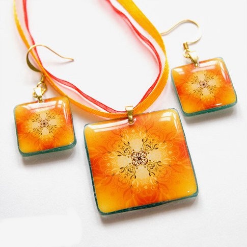 Souprava přívěsku a náušnic - Kytička čtverec525 Kč/ ks