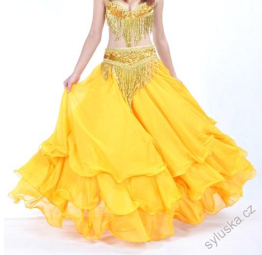 Elegantní šifonová sukně složená ze 3vrstev, krásně se při tanci točí. Konce volánů jsou zakončeny silonem, aby se krásně vlnily. V pase na gumu. Bez rozparku.