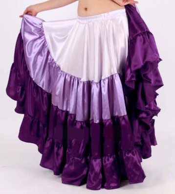 Saténová kolová taneční sukně, bez rozparku, 4-volánová. Elastický pas.