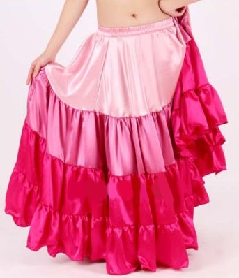 Saténová kolová taneční sukně, bez rozparku, 4-volánová. Elastický pas.