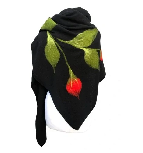 Krásná, teplá a zároveň lehká dlouhá ŠÁLA , příjemná a měkká na dotek, zdobená květinovými vzory - vytvořené tzv. suchým filcováním (plstěním).