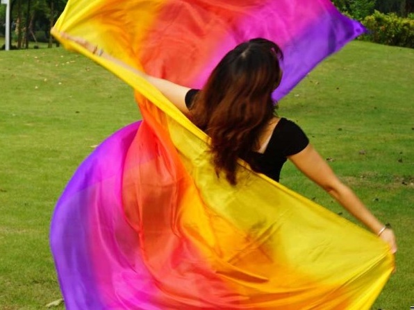 Kvalitní hedvábný závoj pro Váš tanec, ručně barvený.
