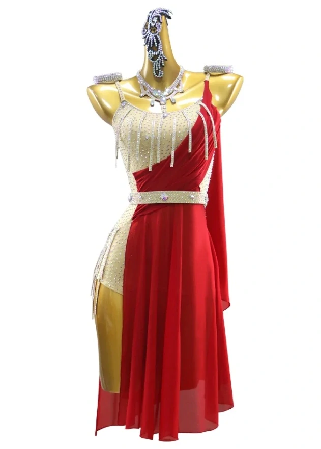 Součástí je kompletní set doplňků – čelenka, náhrdelník a náramky – díky kterým vznikne dokonale sladěný jevištní outfit bez dalšího hledání. Šaty jsou ideální pro latinu, taneční soutěže i show vystoupení, kde chcete zaujmout na první pohled.