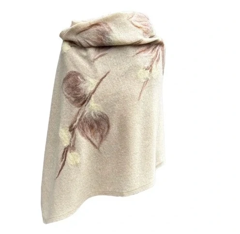 Krásná, teplá a zároveň lehká dlouhá ŠÁLA , příjemná a měkká na dotek, zdobená květinovými vzory - vytvořené tzv. suchým filcováním (plstěním).