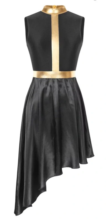 Taneční lehké šaty pro moderní či jiný tanec, kombinace se zlatou, malý stojáček, vzadu na zip.