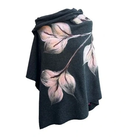 Krásná, teplá a zároveň lehká dlouhá ŠÁLA , příjemná a měkká na dotek, zdobená květinovými vzory - vytvořené tzv. suchým filcováním (plstěním).